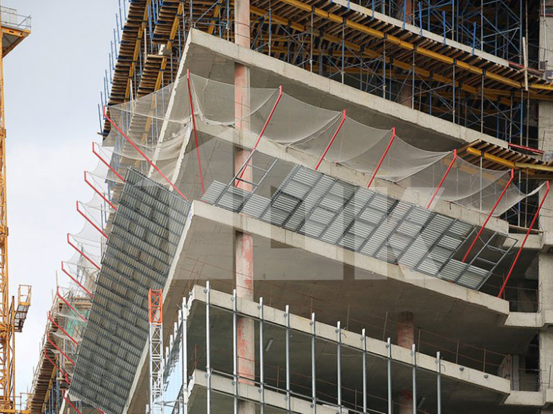 Защитно-улавливающая сетка системы T эффективно используется на строительных площадках для улавливания падающих материалов, мусора, инструментов и людей. Также она надежно защищает всех работающих непосредственно под местом расположения ЗУС, от падающих предметов.